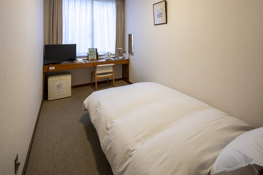 2022年に全室改装した18平米の広々としたセミダブルルーム。